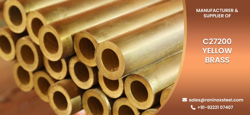 Raninox Steel is leading supplier and exporter of C27200 Yellow Brass Pipes, Tubes, Sheets, Plates, Coils, Round Bars, and Pipe Fittings. C27200 Yellow Brass is a high-quality copper-zinc alloy containing approximately 63% copper and 37% zinc. It offers an excellent balance of strength, corrosion resistance, ductility, and formability, making it one of the most widely used brass grades in engineering, construction, electrical, marine, and decorative applications.