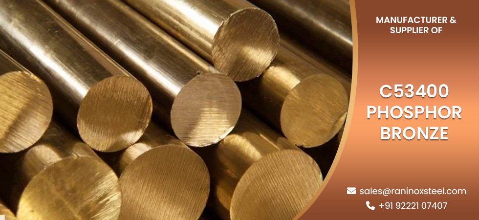 Raninox Steel is a trusted manufacturer and supplier of premium-quality C53400 Phosphor Bronze Pipes, Tubes, Sheets, Plates, Coils, Round Bars, and Pipe Fittings. C53400 phosphor bronze is a copper-based alloy known for its strength, corrosion resistance, and excellent fatigue properties. It contains tin and phosphorus, which enhance durability and wear resistance.