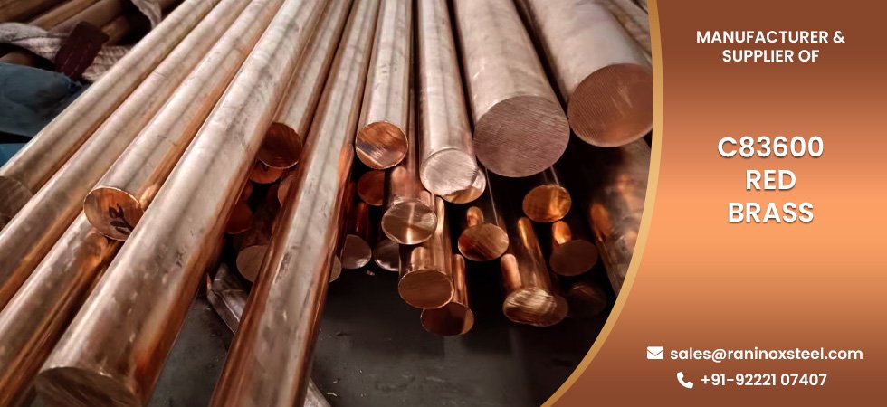 Raninox Steel is leading supplier and exporter of C83600 Red Brass Pipes, Tubes, Sheets, Plates, Coils, Round Bars, and Pipe Fittings. C83600 Red Brass (also called 85-5-5-5 Leaded Red Brass) is a copper-based alloy containing copper, tin, zinc, and lead. It is widely used in plumbing, marine, architectural, and industrial components because of its excellent corrosion resistance, pressure tightness, machinability, and casting properties.