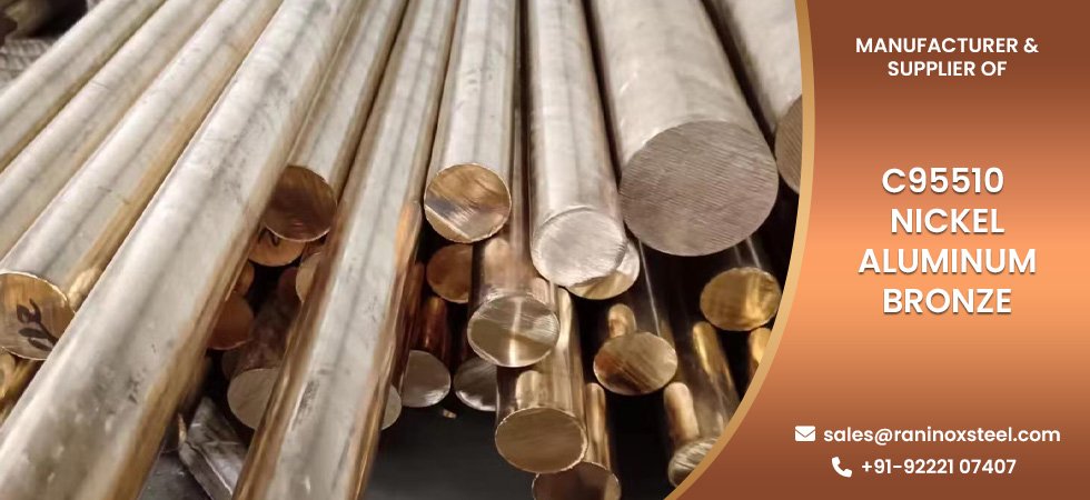 Raninox Steel is a leading manufacturer & Supplier of C95510 Nickel Aluminum Bronze pipes, tubes, sheets, plates, coils, and round bars. C95510 Nickel Aluminum Bronze (NAB) is a high-strength copper-based alloy containing aluminum, nickel, and iron, making it ideal for heavy-duty applications exposed to seawater, chemicals, and high pressure.